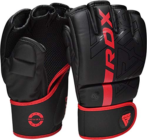 RDX Guantes MMA Artes Marciales Entrenamiento, Precurvado Maya Hide Cuero Grappling Guantillas, Kara Ventilada Palma…
