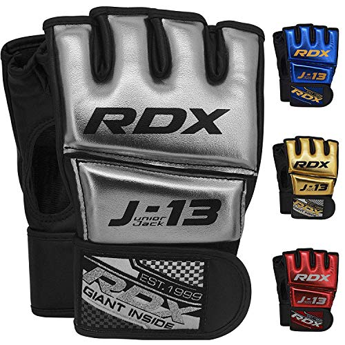 RDX Niño Guantes MMA para Artes Marciales Entrenamiento | Junior Metallic Cuero Grappling Guantillas | Bueno para Kids…