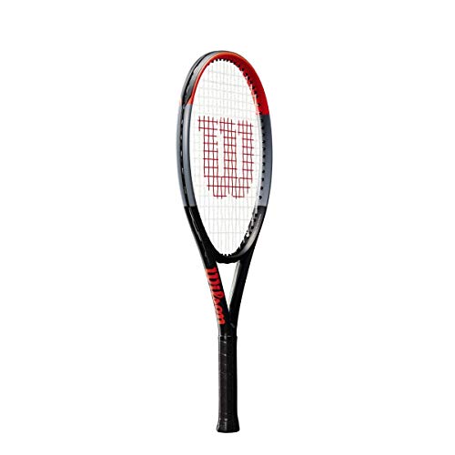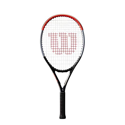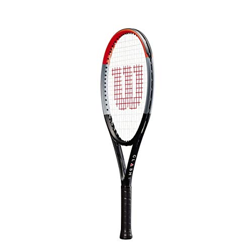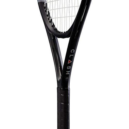 Contenido: 1x Raqueta de tenis para niños Clash 25 de Wilson, Edad: entre 9 y 10 años, Longitud: 63,5 cm, Cabeza: 645,2 cm2, Peso (sin cordaje): 240 g, Material: grafito, Negro/gris/rojo, WR016210U